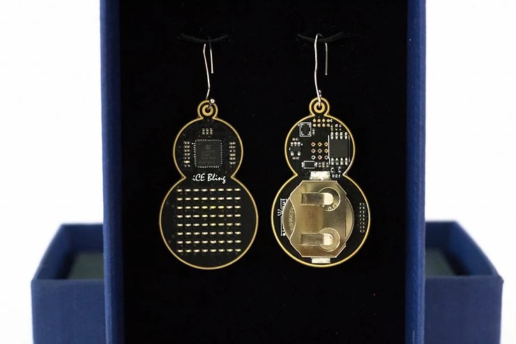 What’s inside the box ? Inside the box were two beautiful earrings which looked like a PCB with embedded LEDs. My eyes lit up with joy as I looked up to Mahesh amused at what I was seeing. He had spoken about wearable electronics before, and today it was in my hands. He tells me that it is a earring he designed and build from scratch from sketching it, designing the PCB in house with some help from one of his engineers, assembling it and programming the Lattice iCE40UP5k FPGA in Verilog. The earrings had an 8 x 8 grid of LEDs and is powered by a CR2032 coin cell. Yes, I spent a lot of time with these geeks, so I speak a bit of tech!